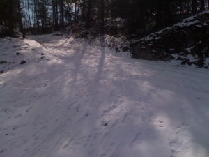 Sagt och gjort så var det i går dags att springa det första långpasset. Jag gav mig av till Ursviks 10a där jag satte på mig mina YakTrax och satte av i spåret. Den senaste tidens kyla och snö hade gjort underlaget förrädiskt. Snön dolde alla mindre gropar i det istäcke som täckte stora delar av spåret.