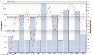 Jag värmde upp ca 2,5 km till Råstasjön och stretchade som vanligt, med lite extra fokus på ITB som krånglade på LU. Sen var det dags för första intervallen. Planen var 6 x 1200 meter i ca 4:15-fart. Första gick som första brukar, en kamp innan kroppen vant sig vid det höga tempot. En minuts gåvila och igång med nästa intervall. Tog ca 2 minutrs vila med kisspause innan det var dags för tredje och fjärde intervallen med 1 minuts vila emellan. Innan 5e och 6e tog jag ca 1 minut extra vila. Sista intevallen gck riktigt bra och nä den var avklarad så kändes det som om jag skulle kunnat göra ett set om två intervaller till, men så roligt ville jag inte ha! Jag sprang hemåt, glad att lidandet var över och att jag gjort ett bra pass.