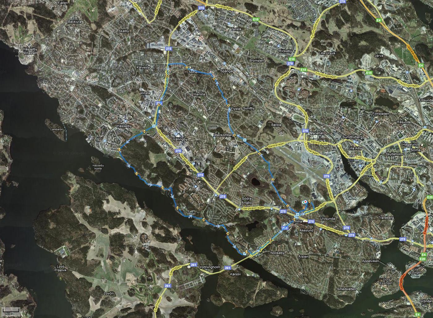 Jag utgick från svärföräldrarnas kolonistuga i Riksby koloniområde (Brommaplan) och satte av mot Vinsta via Bromma Kyrka, Spånga och Solhem. Tån värkte mer och mer, vilket gjorde att jag började springa lite annorlunda för att inte belasta tån. Insåg att det inte var den bästa strategin, då det istället skulle leda till att jag fick ont på andra ställen i kroppen av snedbelastningen. Istället fann jag en avslappnad löpstil där jag inte sköt ifrån lika mycket och det visade sig vara melodin som fick andra halvan av löpturen att bli lyckad trots allt.