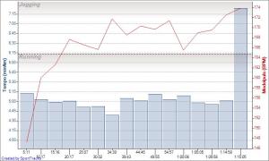 Tempot fram till Rålis lågt jämnt runt 5:00 och det kändes behagligt, även över och nedför Tranebergsbron. Stannade till kort i parken och stretchade innan det var dags att forcera Västerbron från den ”lätta” sidan.