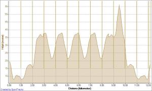4 varv avverkade jag i backarna innan jag tyckte att det fick räcka för dagen och styrde kosan mot Haga-kullen. Sprang upp till toppen på grusvägen och sen ned samma väg för att springa hem. På vägen fick jag magknip, men beslöt mig ändå för att springa en omväg hem. Dåligt beslut visade det sig senare.