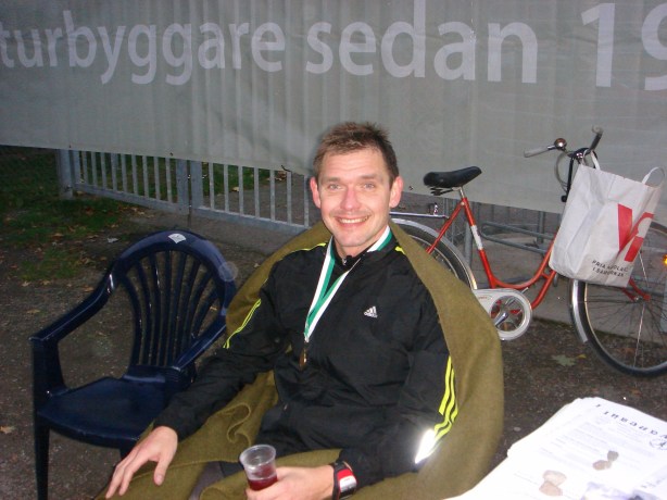 Uppsala 100 -08. Efter nästan 12 timmars löpning var det rejält skönt att sitta ner!