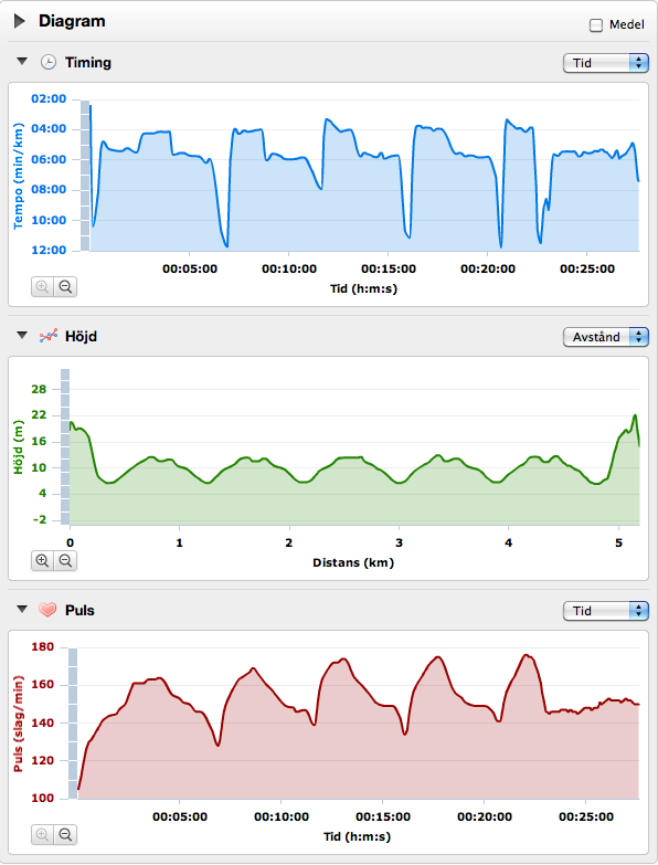 Jag laddade om och gav mig ut igen för att avklara mitt intervallpass. 5x 400 meter med 3 minuters vila, precis som i söndags minus en intervall. Med en uppvärmning i princip gjord så valde jag att bara få några meter i benen innan jag gav mig på intervallerna. Ute blåste det från alla håll. Medvind ena sekunden och motvind nästa. Kastvindar som fick mig att snubbla till ibland. Mycket märkligt väder. Temperaturen höll sig iallafall behaglig strax över 15 grader och jag slapp regn. Fick ihop 5 st bra intervaller och kunde sen jogga hemåt för att sätta igång med middagen. I morgon blir det förmodligen total vila då jag ska till Kastrup över dagen och sen möta upp Janica efter Vårruset. Det finns inte mycket tid över alltså.
