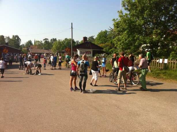 Väl framme i Grisslehamn hade det börjat samlas en hel del löpare och arrangörerna naturligtvis. Nummerlapparna var upphängda på ett staket och en lapp visade vems som var vems, smart sätt att dela ut lapparna.