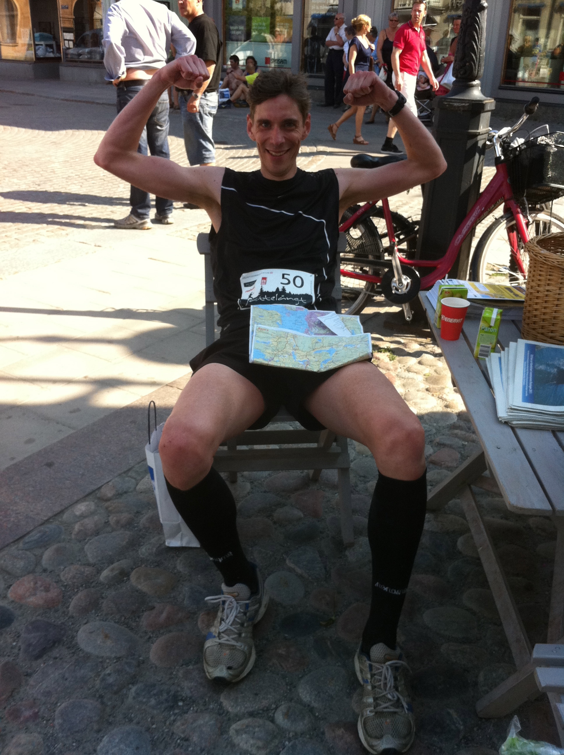 Jag insåg efteråt att jag druckit för lite under loppet samt fått i mig alldeles för lite energi. Ungefär hälften av min Perpetuem var urdrucket och totalt drack jag 3-3,5 liter vätska, inklusive Perpetuem. Kanske det förklarar yrseln och tröttheten? Orutinerat hursomhelst, men så hade jag ingen erfarenhet att springa långa lopp i 30 graders värme. Nu har jag det. Nästa gång kanske jag gör mer rätt.