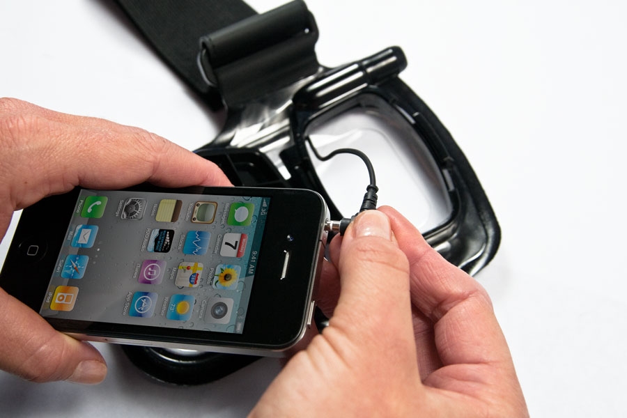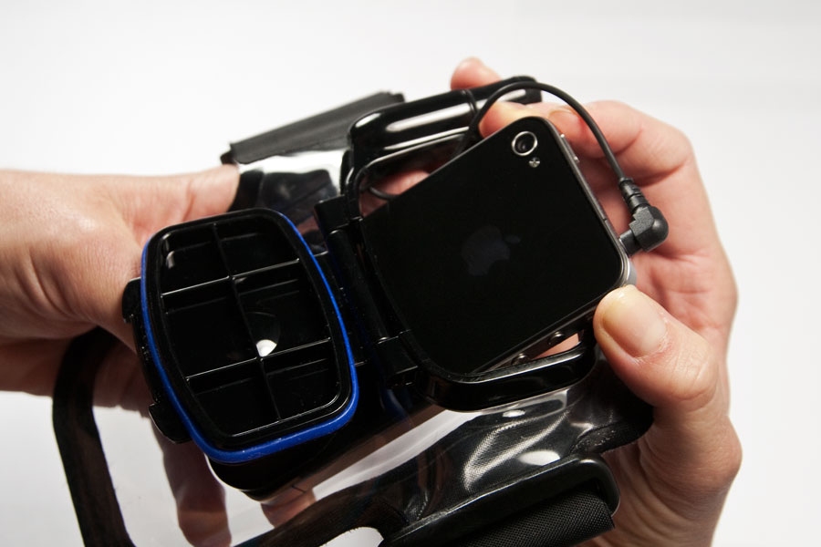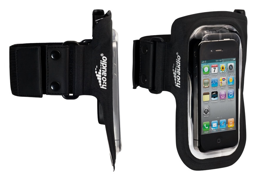 När jag var på Paragon Sports i NYC så hittade jag ett vattentätt armband vid namn Amphibx Fit som passar iPhone och liknande telefoner. Det är mig veterligen det enda helt vattentäta armband som ger dig möjlighet att ansluta hörlurar. Vattentäta skal finns, men då kan du inte använda hörlurar, om de inte är trådlösa förstås.