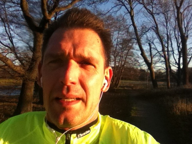 Dagens pass gick hursomhelst alldeles utmärkt. Mina vader var rejält stela efter gårdagens pass, men de mjuknade efter nån kilometer. Jag sprang i ett lagom ansträngande tempo, lite snabbare än det tempo jag brukade springa mina distanspass tidigare. Ibland slog jag av på tempot några sekunder för att aktivt återhämta mig, vilket även lurar hjärnan lite