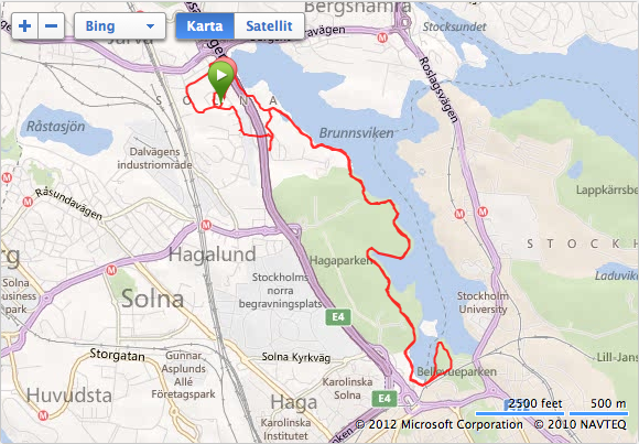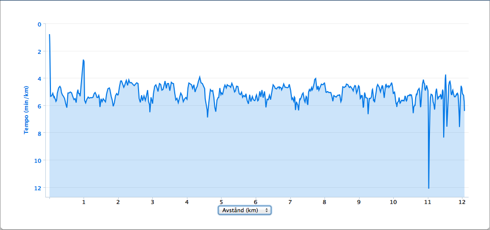Veckans fartlekspass var det som kändes absolut bäst. Jag tog rundan ned till Bellevueparken (Haga) och tillbaka. Värmde upp ca 2 kilometer, ökade sen farten under ca 500 meter och vilade ca 500 meter. Snittempot hamnade strax över 5:00, men tyvärr fick pulsmätningen spatt efter halva passet, så jag vet inte vad jag hade för snittpuls.