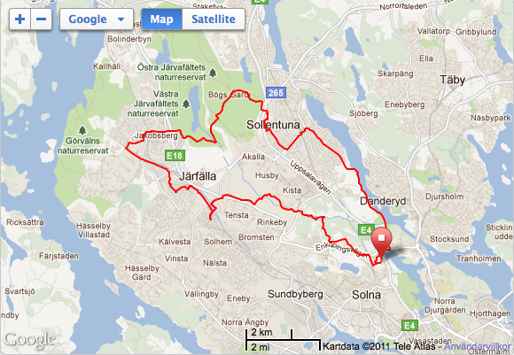 Sista riktiga långpasset inför Bislett blev en 40 km lång runda på delvis ny mark. Försökte i möjligaste mån att inte springa där jag sprungit förut, vilket gick förhållandevis bra. Tack vare Perpetuem så var energin inget problem och kroppen kändes ganska ok, om än inte direkt pigg. Det ska faktiskt bli lite skönt att få gå in i formtoppningsperioden och förhoppningsvis komma till en punkt där jag känner mig både utvilad och stark, med fördel lagom till Bislett.