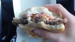 Jag gav inte upp hoppet om att kunna springa igen, utan testade med jämna mellanrum att springa, men utan framgång. Varje försök kändes som ett slag i solarplexus, så smärtsamt var det. Dock fanns det en uppsida med att bara kunna gå och det var att jag då kunde äta och dricka precis vad som helst, så strax innan kl 1 på natten så satte jag i mig mitt första mål mat sen frukosten. Det serverades bl a wraps med köttfärsfyllning och det sköljde jag ned med Coca-Cola. Lyckan var stor!