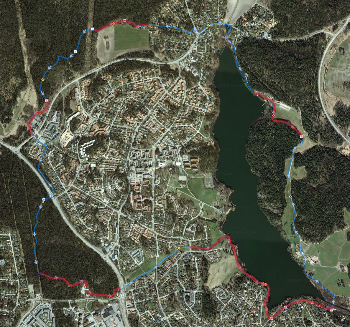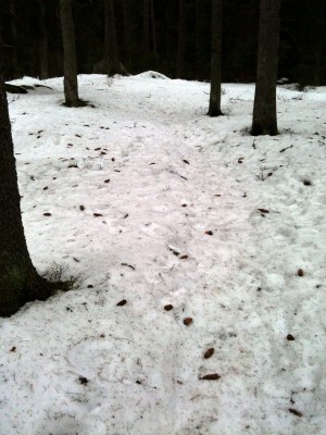 Detta var första ”kompletta” passet med de elastiska, skitscoola, neon-orangea, skosnörena från Xtenex och de levererade. Skorna satt som mockasiner och trycket fördelades helt jämnt. Pga allt grus som ligger kvar på marken fick jag stanna till några gånger för att tömma skorna, men det gick blixtsnabbt tack vare snörena. Bara att dra av skon och dra på den igen. Finns naturligtvis på Runners Gear