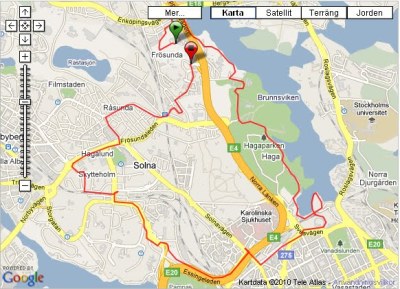 På söndagen gav jag mig av mot Stallmästargården för att möta upp med några IF Linnéaner, i detta fallet Rebecca och Nisse. Rebecca hade jag träffat på långpasset förra veckan, medan Nisse var en ny bekantskap. Vi gav oss av längs Brunnsvikens östra sida och vid Ålkistan ledde jag in dem på en avstickare till Stora Skuggan, för att sen springa tillbaka till Brunnsviken och fullborda varvet. Strax efter Stallmästargården vek Nisse av hemåt, medan jag och Rebecca inledde ännu ett varv runt vattnet. Min pulsmätning började bete sig väldigt underligt, med puls upp över 200 bpm (min maxpuls). Det fick mig lite ur humör, men efter ett tag släppte jag det och lunkade på.