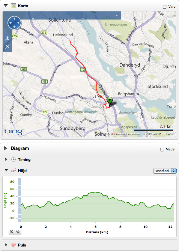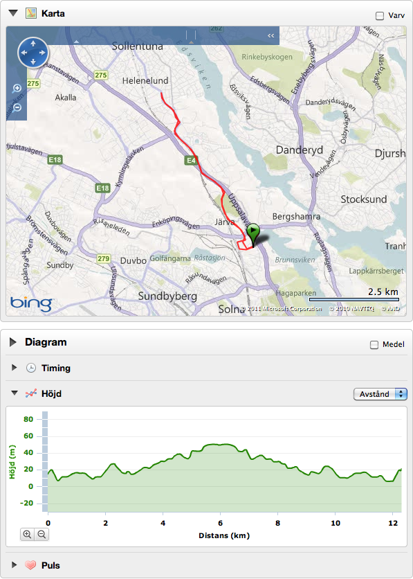 Det är ju sparsmakat med löpning just nu, men några pass är kvar innan StM. Idag blev det 12 km distans i solen, underbart. På med mina Kinvara och satte av mot Sollentuna, via Ulriksdal. Försökte ligga under 150 bpm i puls och slappna av, bara låta benen springa och inte känna någon stress över tempo eller annat. Efter 6 km, varav det mesta är uppför, så var det dags att vända hemåt igen. Kroppen kändes ok och jag kunde efter avslutat pass konstatera att formen är helt ok. 12 km @ 5:15 med förvånansvärt låg puls känns bra. Med en veckas formtoppning kvar hoppas jag att jag kommer vara i hygglig form till maran.