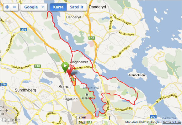 Idag blev det knappt 30 minuter kettlebell innan frukost och sen 12 km distans när vi kommit upp till kollis. Tog en sväng från Brommaplan in till Rålambshovsparken och tillbax. Vet inte om det var morgonpasset i kombination med värmen (30C i solen) som tog musten ur mig, men min puls låg skyhögt under större delen av passet, ibland så högt som 88% och det i ett tempo runt 5:30.