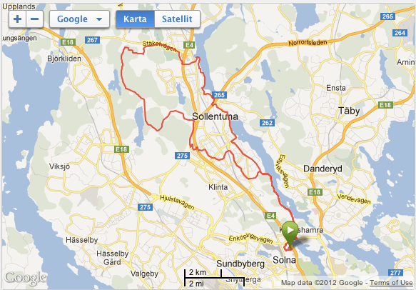 I söndags åkte  Janica till Gotland för att jobba i Almedalen. Alicia sov över hos mormor och morfar, då det var sista chansen innan vi åker till Italien på fredag. Jag var alltså gräsänkling och såg ett ypperligt tillfälle att ge mig ut på ett lite längre långpass utan att behöva känna mig begränsad tidsmässigt. Via Twitter fick jag frågan från Camilla om hon kunde hänga på en bit, vilket jag naturligtvis tackade ja till. Det är ju sällan jag har sällskap, så det är extra kul de få gånger det händer. Vi möttes upp längs Edsviken och vi sprang ihop ca 2 mil tills det fick vara bra för henne. Hon ska springa 110 km i Trail Verbier-Saint Bernard.  på lördag, så hon behöver vila lite åxå.