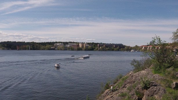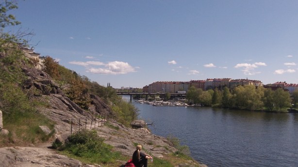 Efter Västerbron valde jag att kolla om det gick att springa via Smedsuddsbadet, vilket visade sig gå ypperligt. Jippi, något helt nytt! Först var det gångbana, men när vi kom till Fredhäll övergick det till klippklättring deluxe. Tempot sjönk och jag fick lite panik. Skulle passet ”skita” sig igen bara för att jag är så sugen på nya vyer?