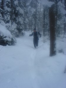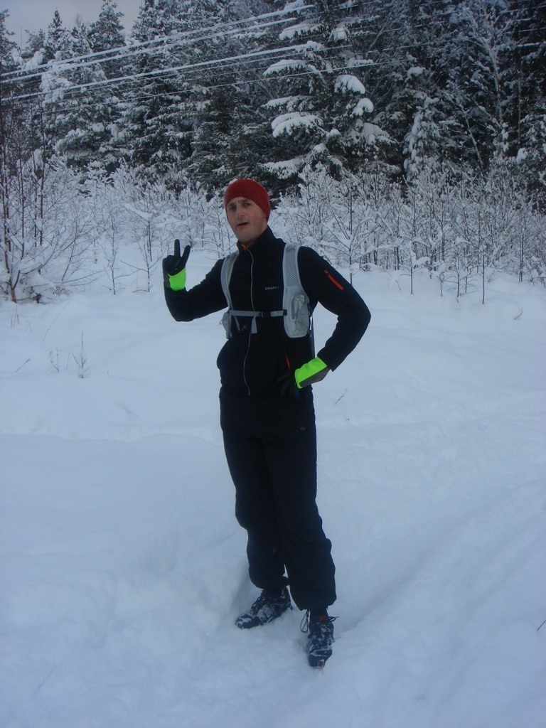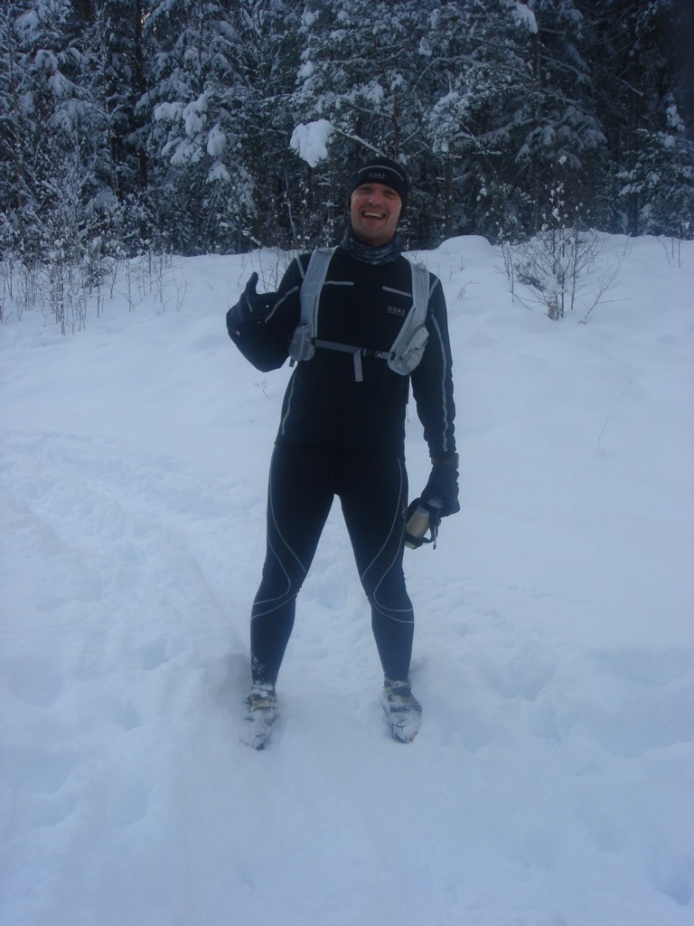 Sprang ändå bort mig totalt och stod så där mitt inne i skogen och undrade var f..n jag var. Min Garmin var just då inte mycket till hjälp, men efter några minuters pulsande i knädjup snö så hittade jag iaf spåret och Garmin vibrerade med budskapet ”course found”. Pust. Kunde se mig själv sitta fastfrusen i snön när räddningsmanskapet hittar mig…