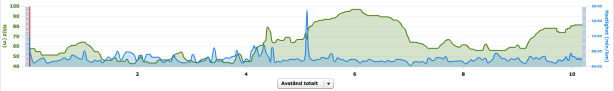 Snittempot stannade på 6:09 och snittpulsen hamnade på lite höga 150 bpm (75%) vilket jag skyller lite på värmen. Jag la mig i en grässlänt vid porten och då kom ett kort duggregn som var välkommet. En skön känsla att ligga där och låta dropparna kyla ned mig. En portion Recoverite med mjölk satt som en smäck efteråt.